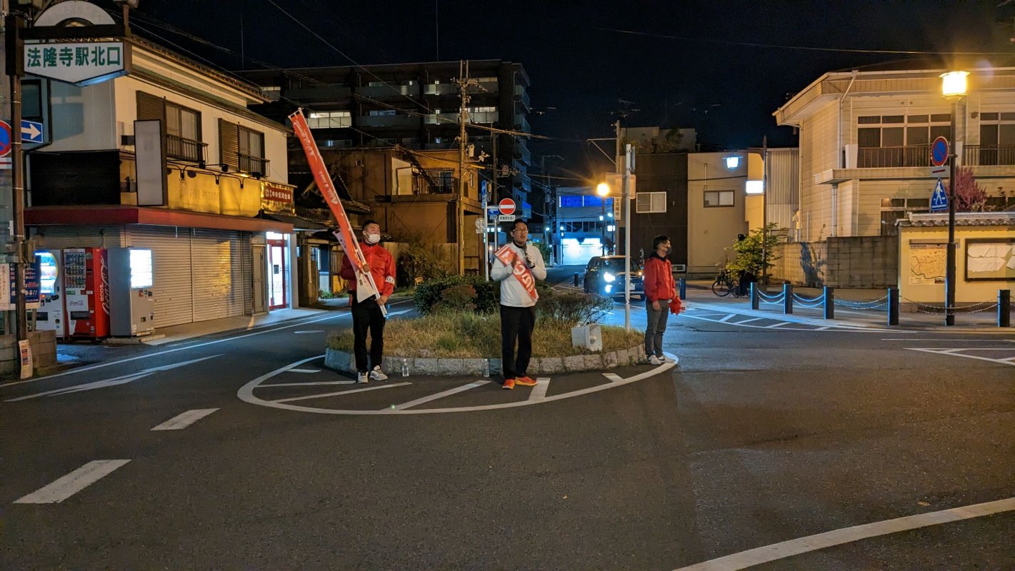 法隆寺駅の北口にて挨拶させていただきました。