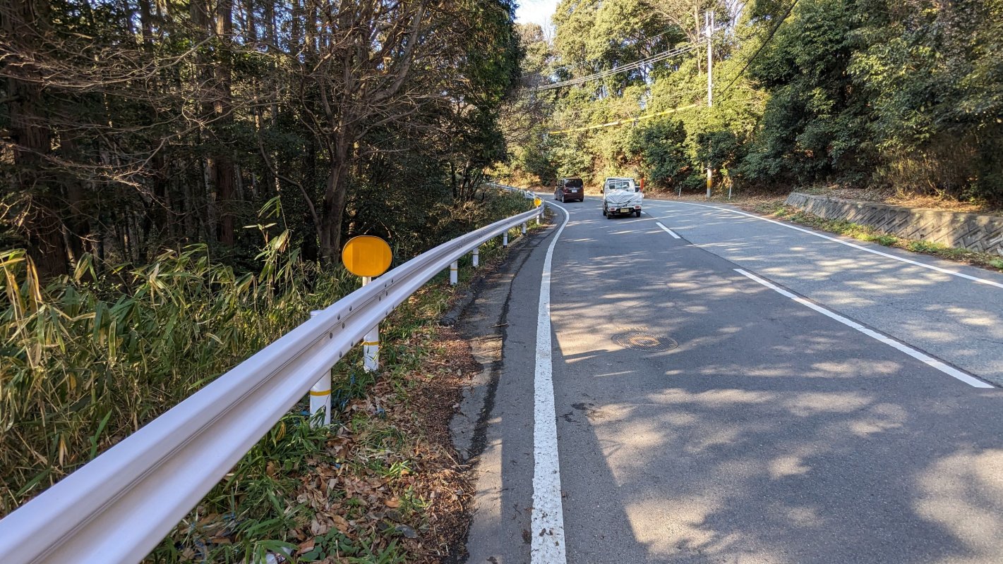崩落箇所が修復されガードレールも新調されていました。