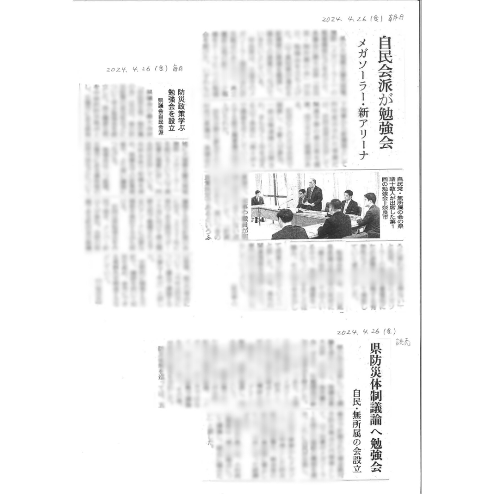 これから県議会内での防災拠点の議論、知事から提案されている太陽光発電施設メガソーラーについての議論をしっかりしてまいります。